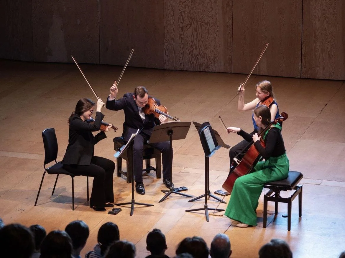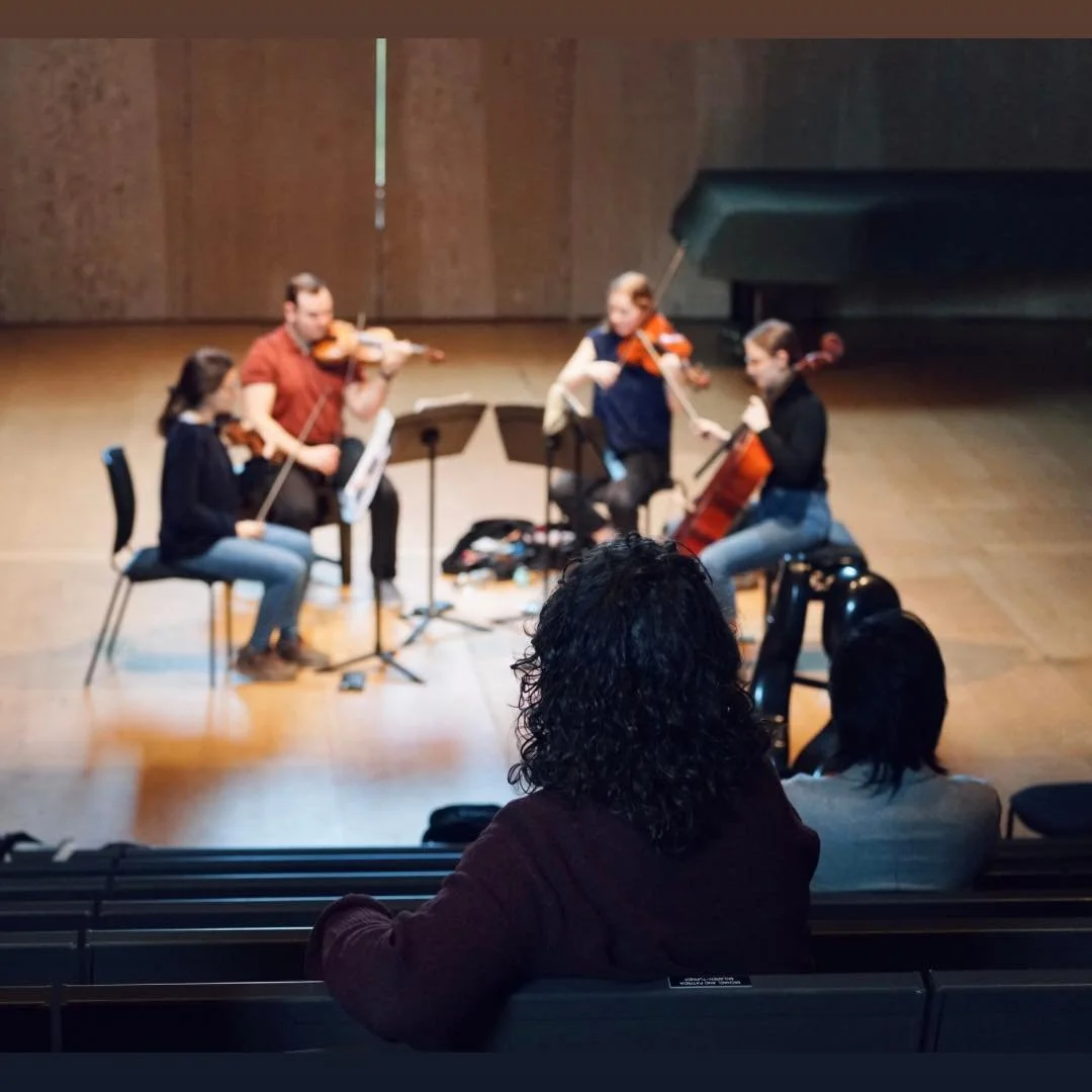 We were delighted to be selected as 2023/2024 Britten Pears Young Artists, attending the ‘Chamber Futures’ course where we spent 10 days in Snape Maltings, Aldeburough with the world renowned artists Quatour Bozzini and Melinda Maxwell. During this time we had many hours of coaching on contemporary repertoire and worked together in workshops alonside our fellow Britten Pears Young Artsists: Calathea Quartet, Ensemble Renard, and Lumas Winds. We were also thrilled to work on ‘Anafim’ a short work for string quartet that was commissioned for us by Britten Pears Arts and was written by Omri Kochavi. This work has become a firm favourite of ours and has since been extended into a longer piece with multiple movements named ‘Arugot’.
